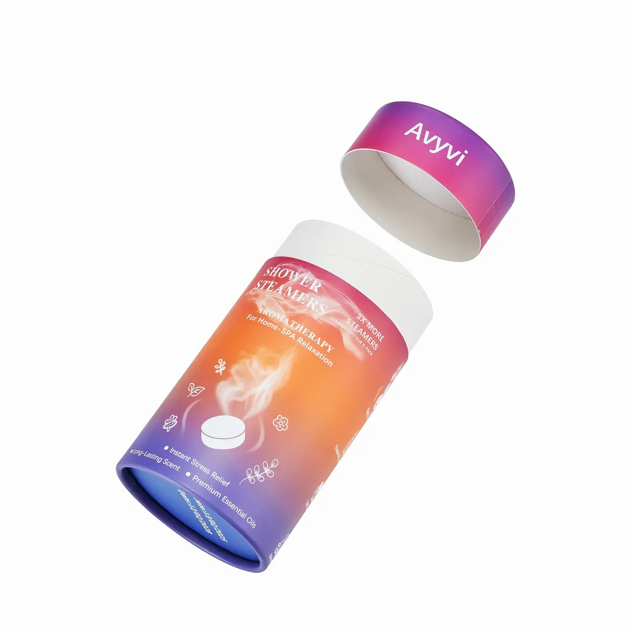 Cylindrical tray and lid style rigid box with shoulder neck.